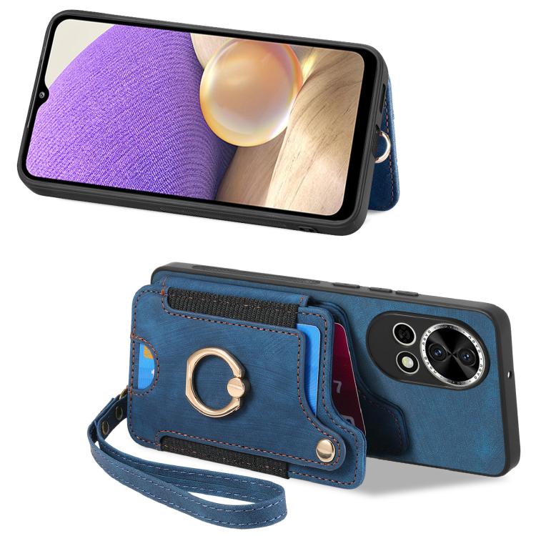 Funda para Teléfono Huawei Nova 13 Pro con Billetera MultiTarjeta, Anillo y Diseño Retro (Azul)