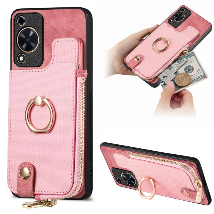 Funda para Teléfono Huawei Enjoy 70 con Cremallera Vertical y Anillo de Cuero Cruzado (Rosa)