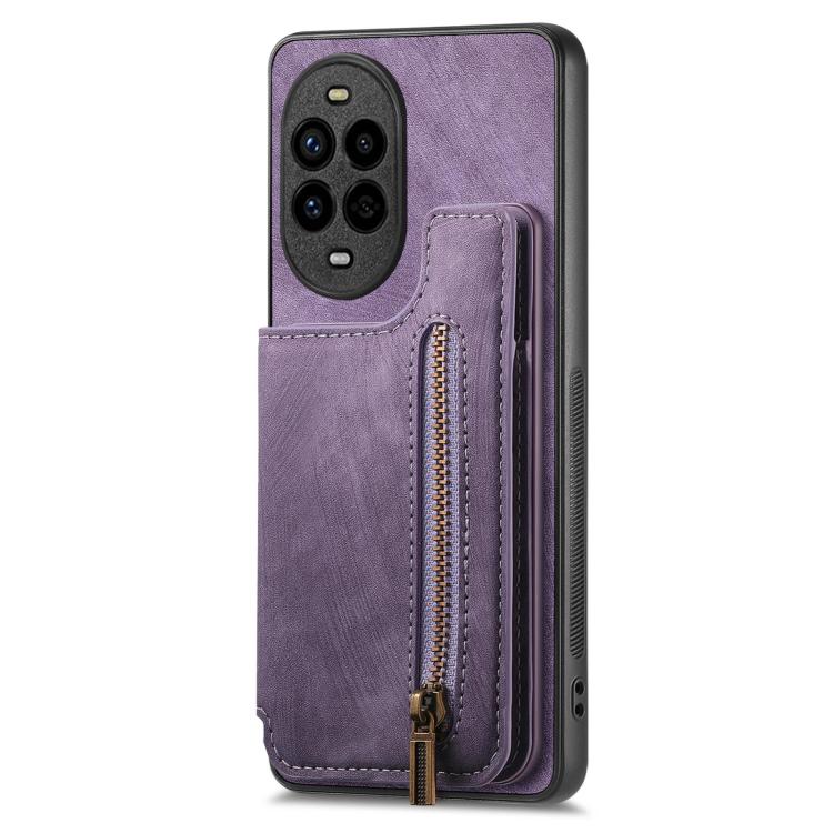 Funda de Cuero Retro con Cremallera para Huawei Nova 13 Pro (Morado)