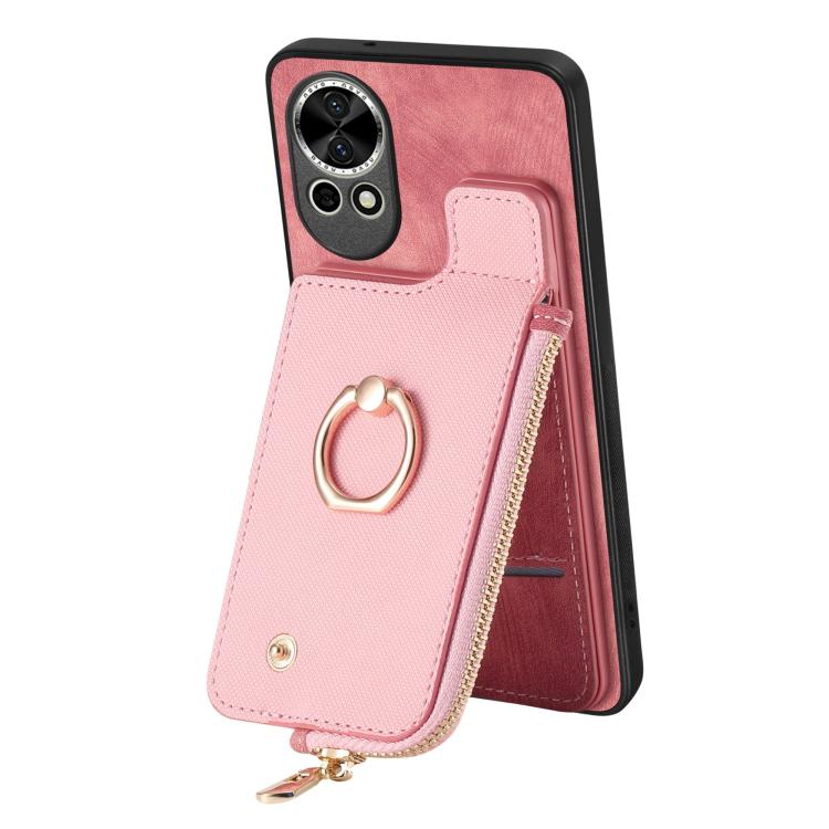 Funda para Huawei Nova 9 Se con Cremallera Vertical y Anillo de Cuero Cruzado (Rosa)
