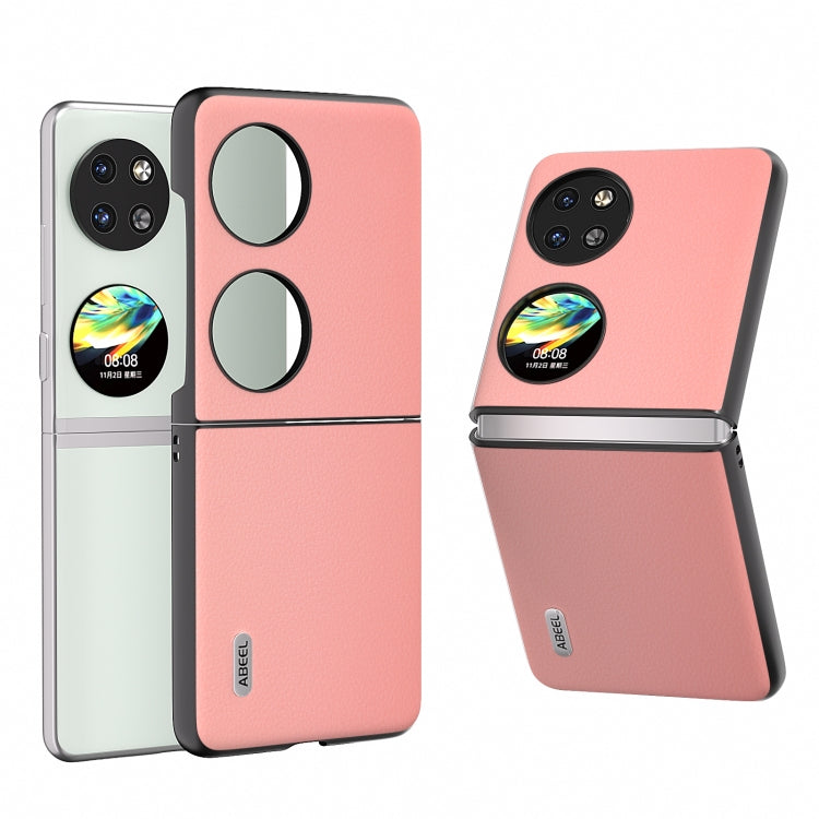 Funda para Huawei P60 Pocket Abeel con Borde Negro Ondulado de Cuero Genuino (Rosa)