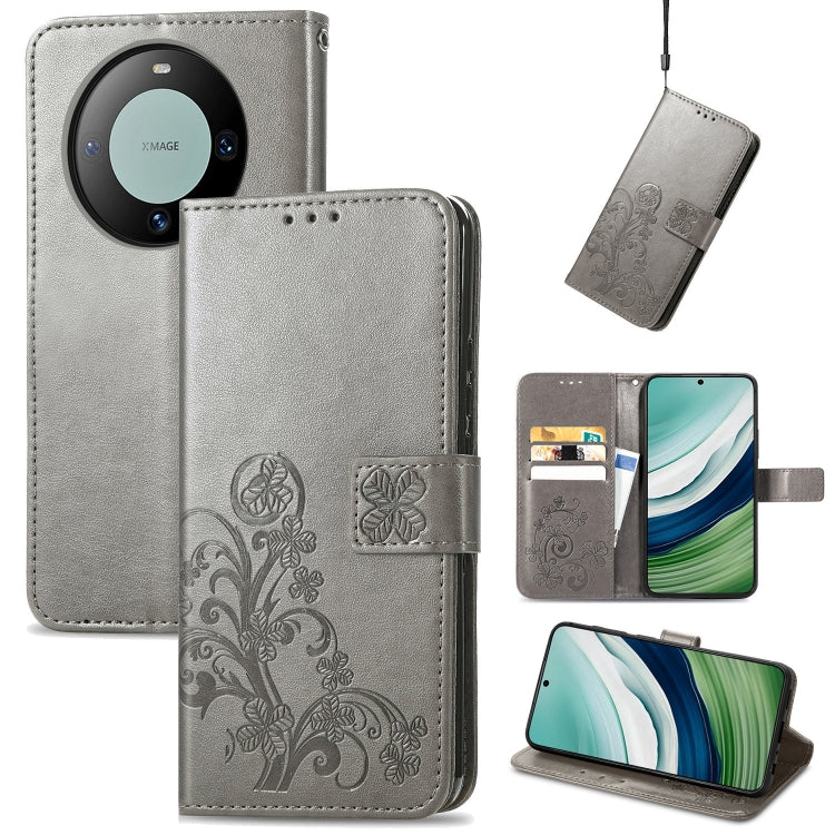 Funda de Cuero Repujado para Huawei Mate 60 con Cierre de Cuatro Hojas (Gris)