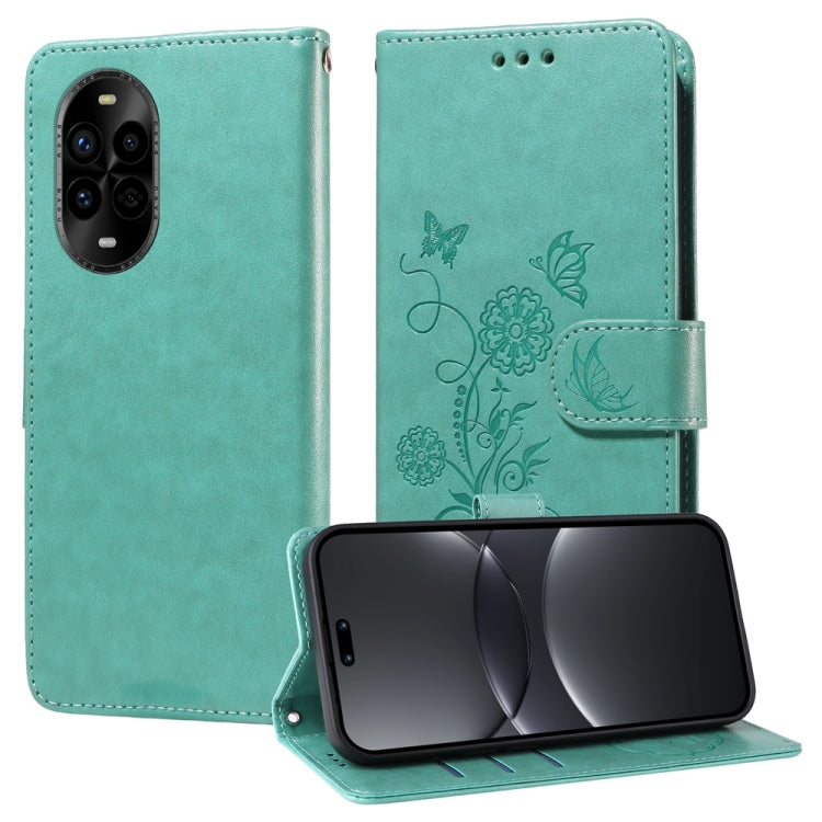 Funda de Cuero Huawei Nova 13 Pro con Diseño de Mariposas y Flores en Relieve (Verde)