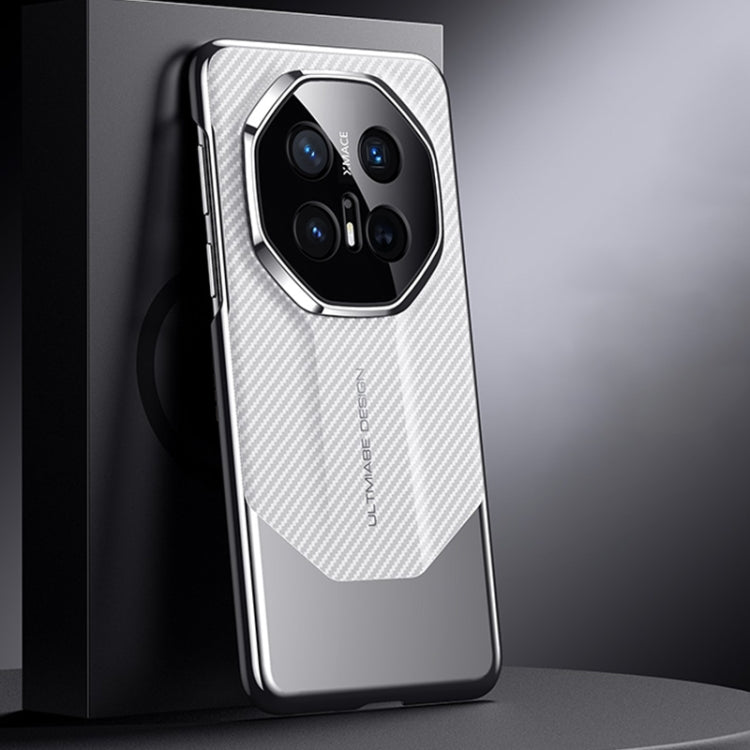 Funda para Teléfono Huawei Mate 70 Platinum con Diseño de Imitación de Fibra de Carbono (Blanca)