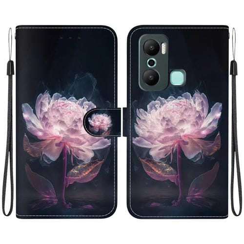 Funda de Cuero para Infinix Hot 12I con Dibujo Coloreado y Textura de Cristal (Peonía de Cristal)