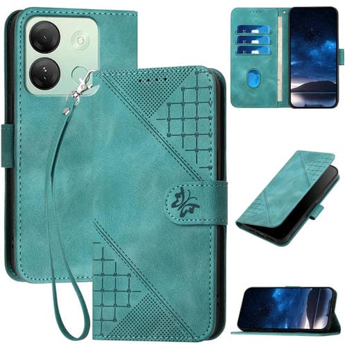 Funda de Cuero con Tapa y Cordón para Teléfono Infinix Hot 30I Yx0080 Diseño Mariposa (Negro)