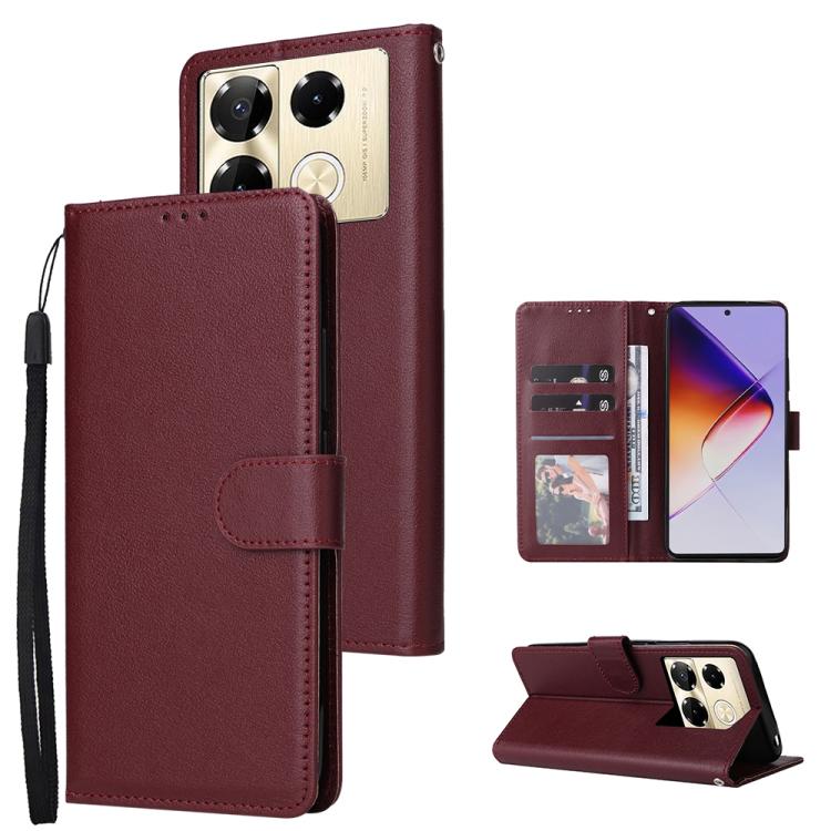Funda de Cuero Multifuncional Infinix Note 40 Pro 5G / 4G / 40 Pro+ 5G con 3 Ranuras (Rojo Vino)
