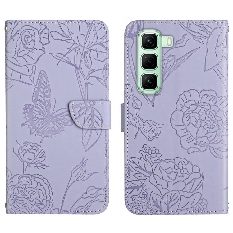 Funda de Cuero con Tapa y Mariposas En Relieve para Infinix Hot 50 Pro 4G (Morado)