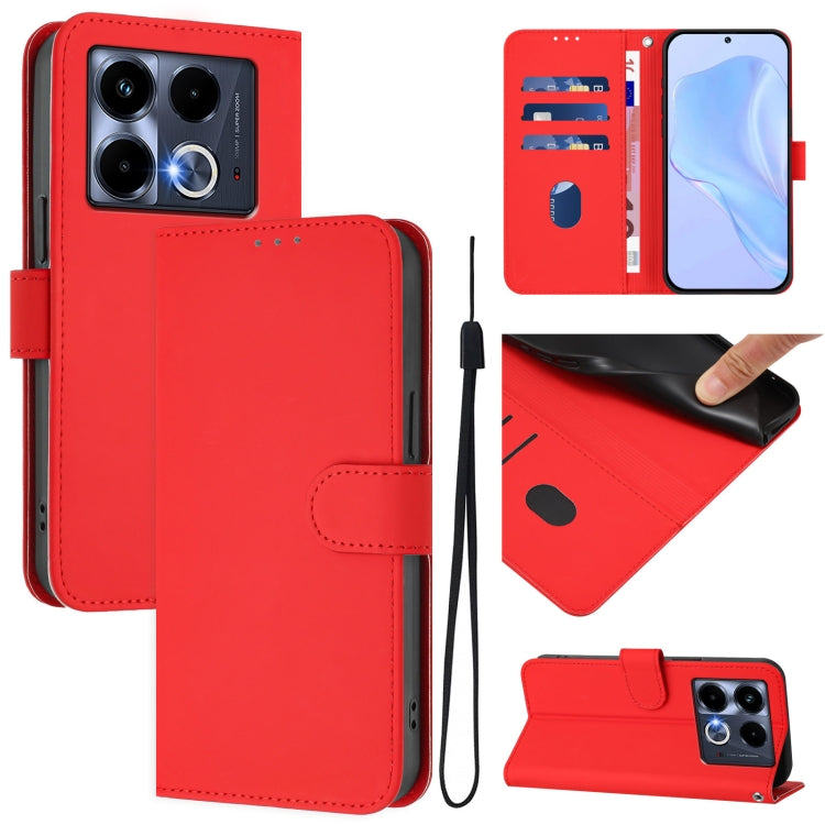 Funda de Cuero con Cordón para Infinix Zero 40 4G/5G con Tacto de Piel (Rojo)
