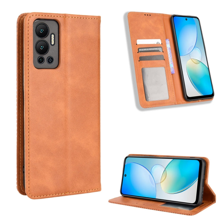 Funda de Cuero para Infinix Hot 12 con Hebilla Magnética y Textura Retro (Marrón)