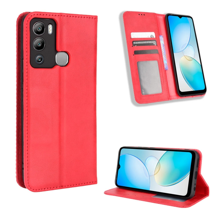 Funda de Cuero para Infinix Hot 12I con Hebilla Magnética y Textura Retro (Rojo)