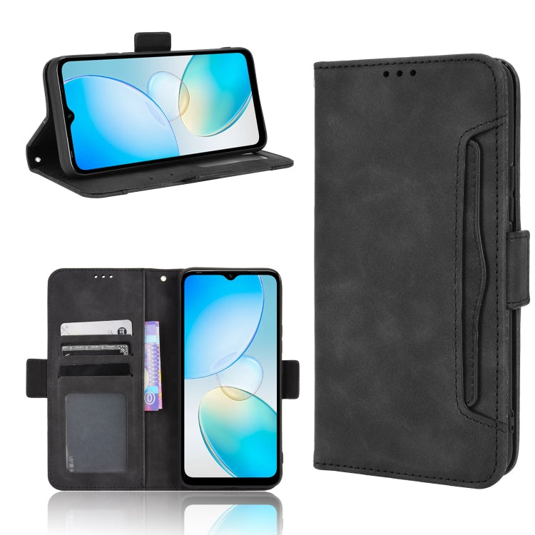 Funda de Cuero para Infinix Hot 12 con Textura Becerro y Ranuras para Tarjetas (Negro)