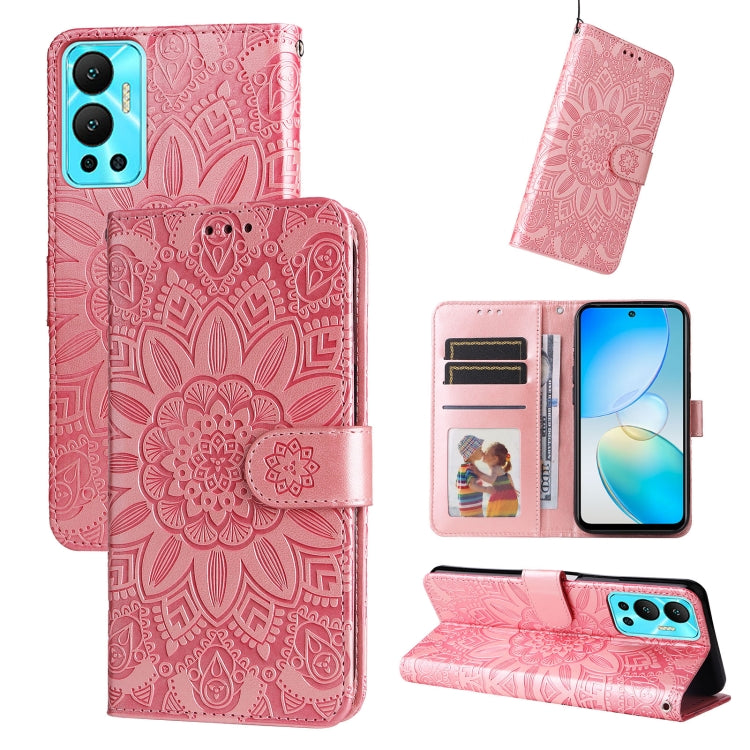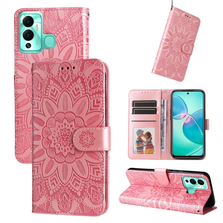 Estuche para teléfono Infinix Hot 12 Play de cuero con estampado de girasol en relieve (Rosa)