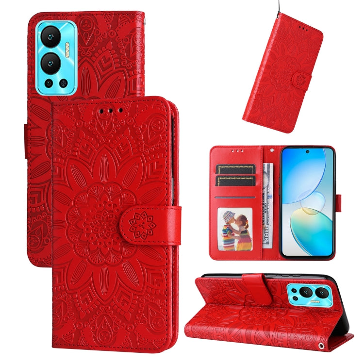 Estuche para Teléfono Infinix Hot 12 Play Cuero Estampado Girasol en Relieve (Rojo)