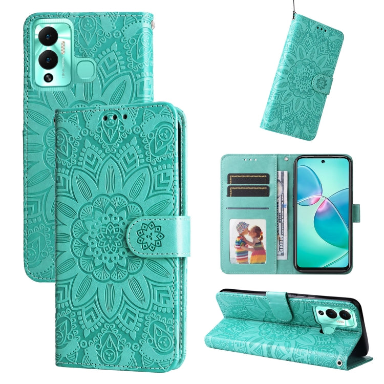 Estuche para Teléfono Infinix Hot 12 de Cuero con Estampado de Girasol en Relieve (Verde)