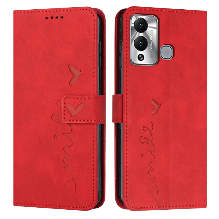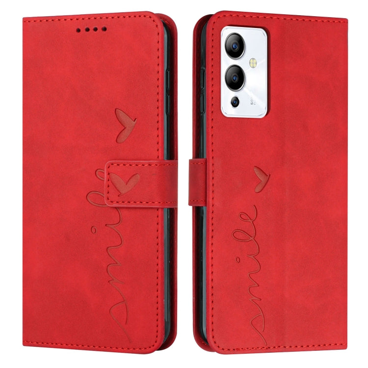 Funda de Cuero para Infinix Hot 12 Skin Feel con Patrón Heart (Rojo)