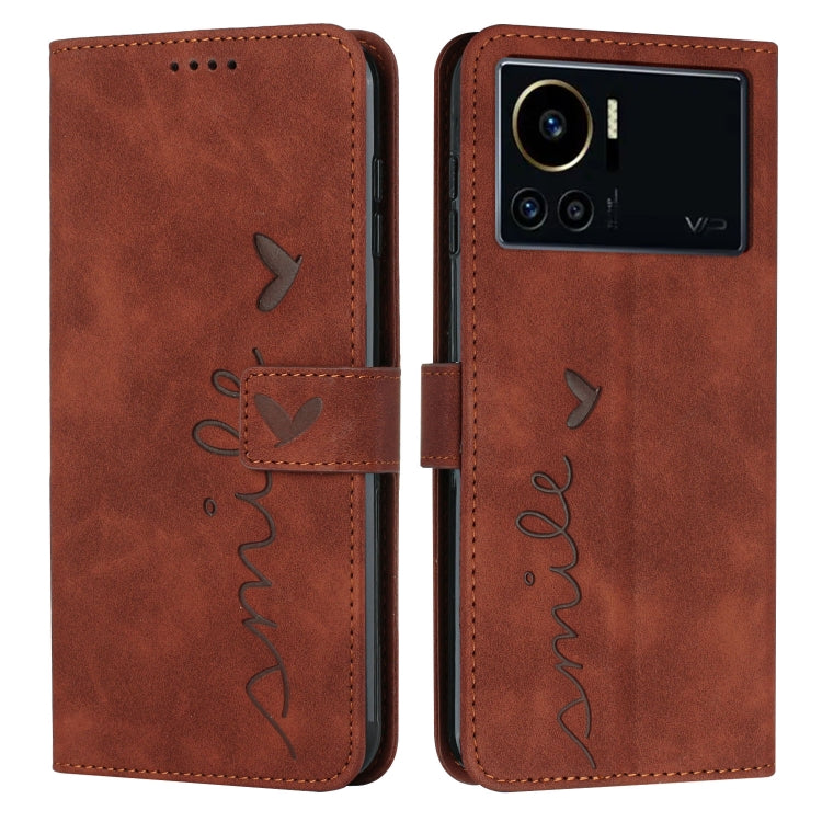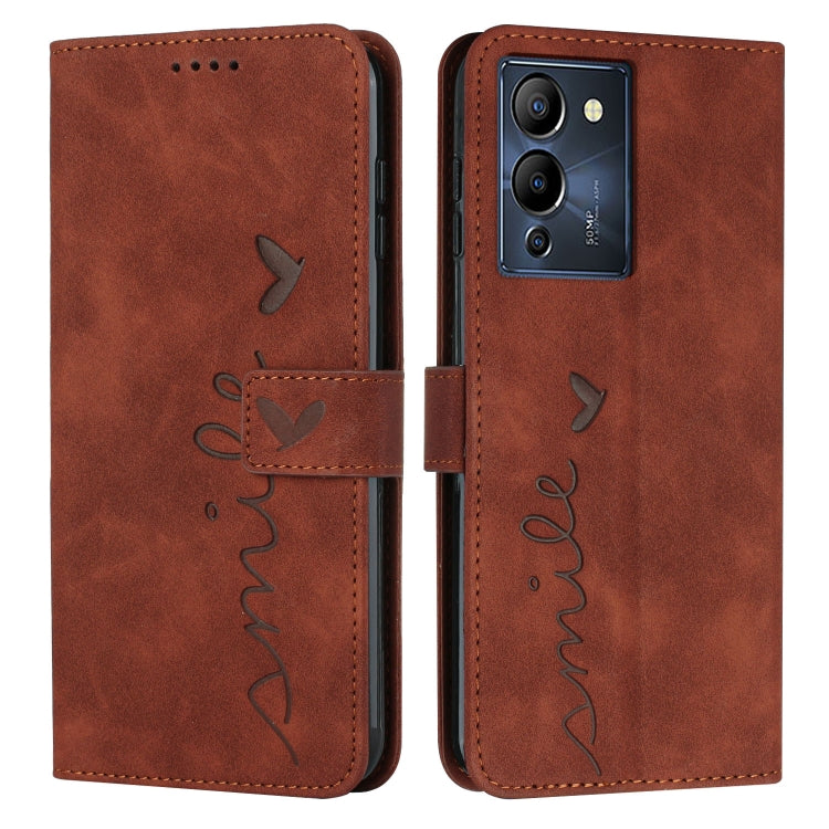 Funda de Cuero para Infinix Hot 12 Skin Feel con Patrón de Corazón (Marrón)