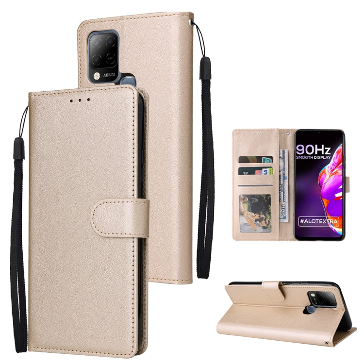 Estuche de Cuero para Infinix Hot 10S con Tapa Horizontal y 3 Ranuras para Tarjetas (Oro)