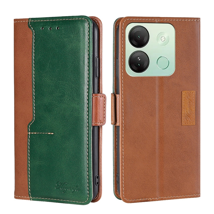 Funda de Cuero para Infinix Hot 30I 4G con Hebilla Lateral y Contraste (Marrón Oscuro + Dorado)