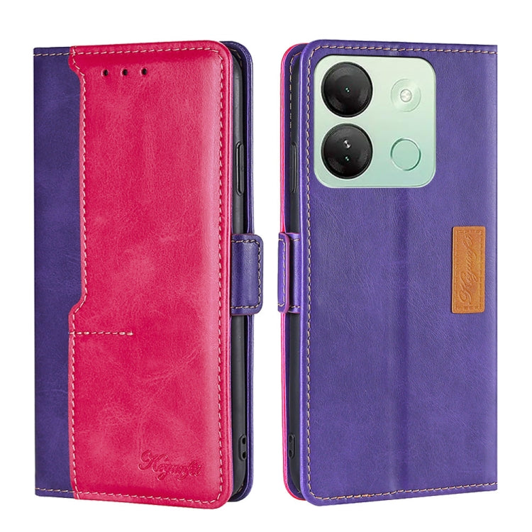 Funda de Cuero para Infinix Hot 30I 4G con Hebilla Lateral y Color de Contraste (Púrpura + Rosa Roja)