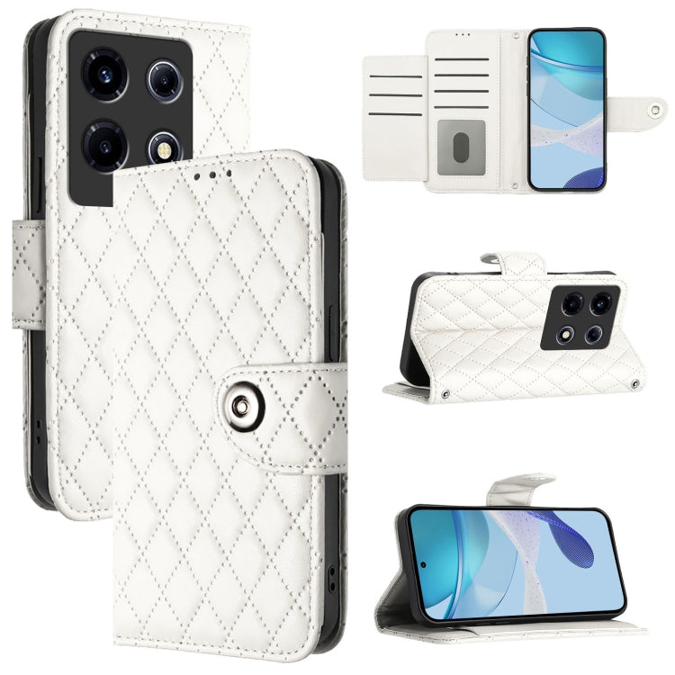 Funda de Cuero para Infinix Note 40 5G con Tapa, Textura Romboidal y Cordón (Blanco)