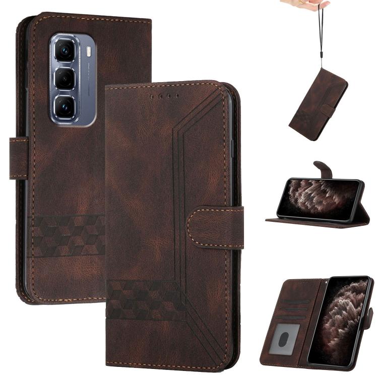 Funda de Cuero con Tapa y Diseño de Piel Cúbica para Infinix Hot 50 Pro 4G (Marrón)