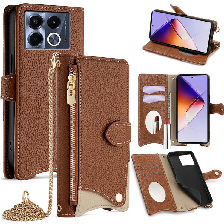 Funda para Teléfono Infinix Note 40 5G con Cadena Cruzada Piel de Lichi y Cola de Pez (Marrón)