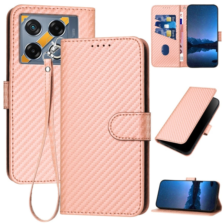Funda de Cuero para Infinix Note 40 4G Yx0070 con Hebilla de Fibra de Carbono y Cordón (Rosa)