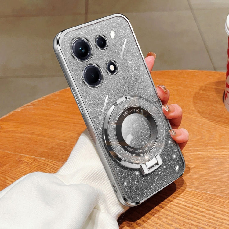 Funda de TPU con Soporte Redondo y Purpurina Degradada para Infinix Note 30 5G (Plateada)