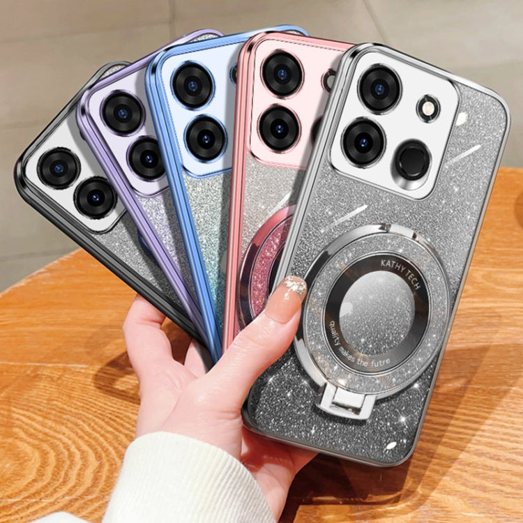 Funda de TPU con Soporte Redondo y Purpurina Degradada para Infinix GT 20 Pro (Negro)