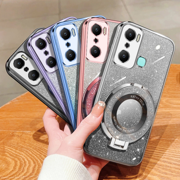 Funda TPU con Soporte Redondo y Purpurina Degradada para Infinix Hot 40I (Morado)