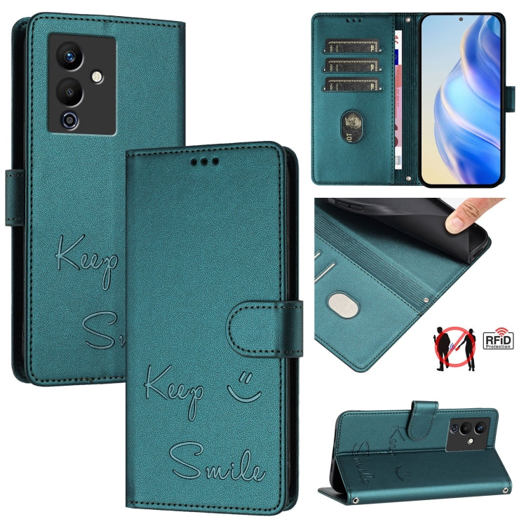 Funda de Cuero Rfid con Relieve Sonriente para Teléfono Infinix Note 30I (Verde Pavo Real)