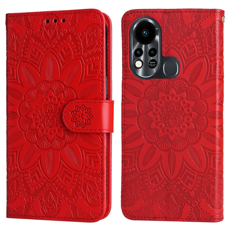 Estuche para Infinix Hot 11S Nfc de Cuero con Estampado de Girasol en Relieve (Rojo)