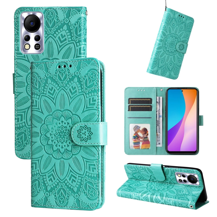 Estuche para Teléfono Infinix Hot 11S Nfc Cuero Estampado Girasol en Relieve (Verde)