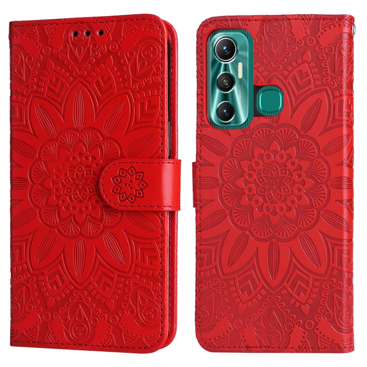 Estuche para Teléfono Infinix Hot 11 Cuero Estampado Girasol en Relieve (Rojo)