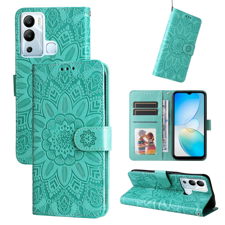 Estuche para Teléfono Infinix Hot 12I Cuero con Estampado de Girasol en Relieve (Verde)