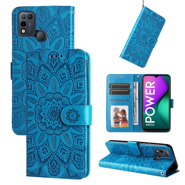 Estuche para Teléfono Infinix Smart 5 Cuero Estampado Girasol en Relieve (Azul)