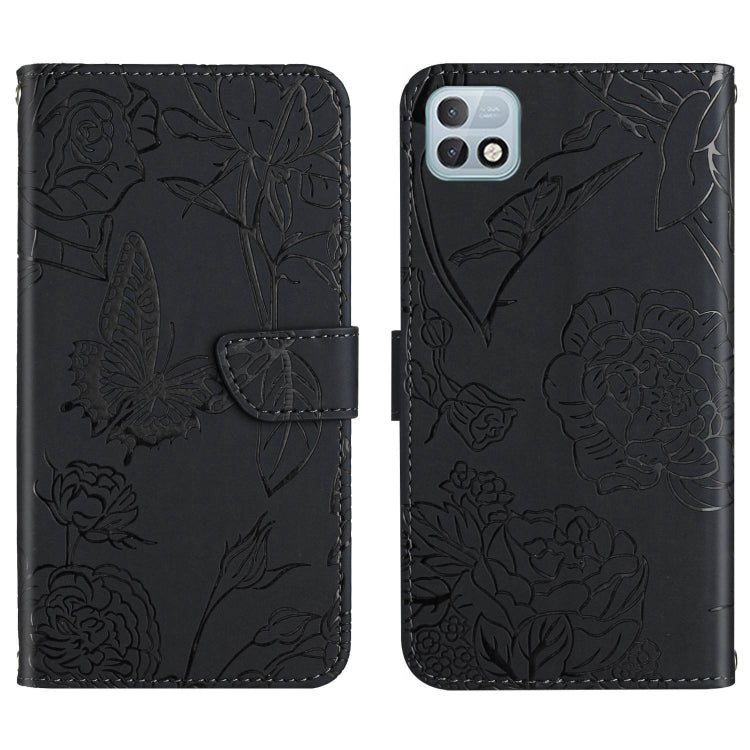 Funda de Cuero para Infinix Note 11 HT03 Skin Feel Butterfly con Tapa en Relieve (Negro)