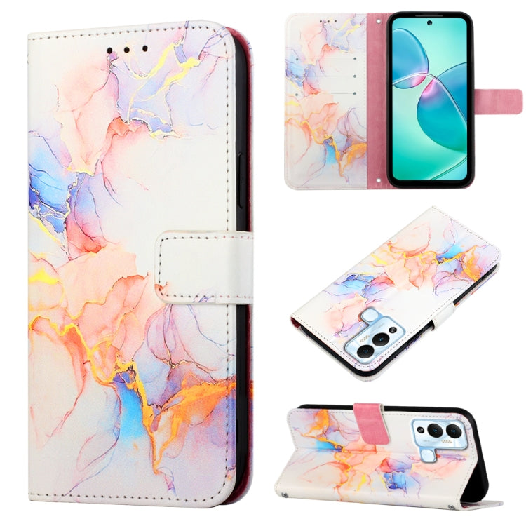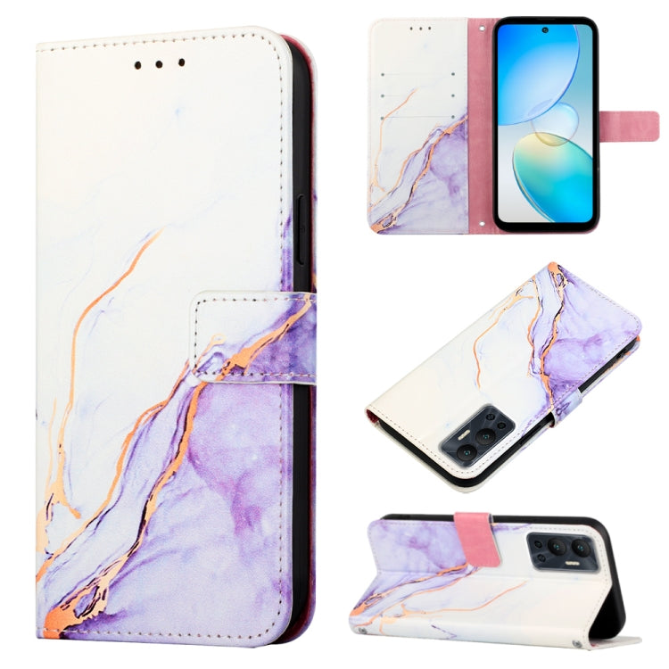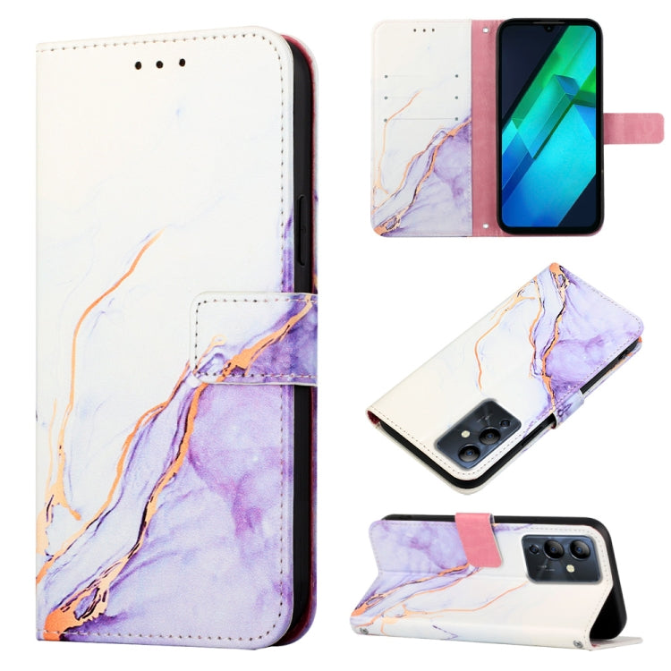 Funda de Cuero con Tapa para Infinix Hot 12I X665 Pt003 Patrón de Mármol (Blanco Púrpura)