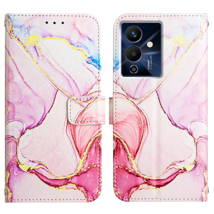 Funda de Teléfono Infinix Note 12 G96 Pt003 con Tapa de Cuero y Patrón Mármol (Oro Rosa Púrpura)