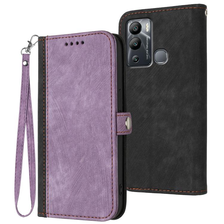 Funda de Cuero con Cierre de Hebilla y Diseño Triangular para Infinix Hot 20 5G (Morado Oscuro)