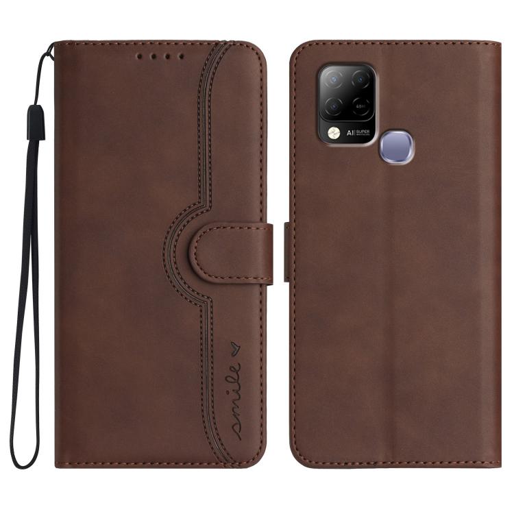 Funda de Cuero con Diseño de Corazón para Infinix Hot 10I (Marrón)