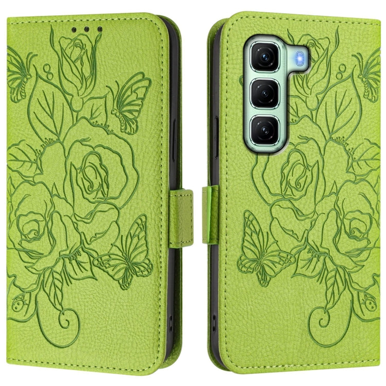 Funda de Cuero Antirrobo RFID con Relieve Rosa para Infinix Zero 40 5G/4G (Verde)