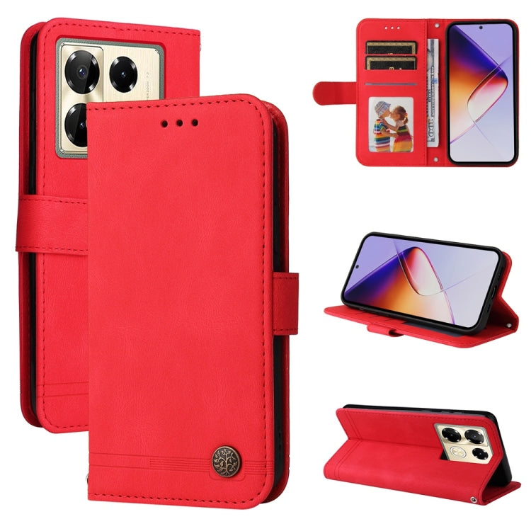 Funda de Cuero con Botones de Metal y Árbol de la Vida para Infinix Note 40 Pro 4G/5G/Pro+ (Rojo)