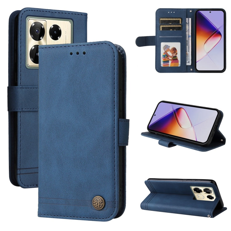 Funda de Cuero con Botones de Metal y Árbol de la Vida para Infinix Note 40 Pro 4G/5G/Pro+ (Azul)