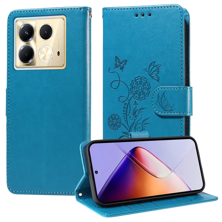 Funda de Cuero para Infinix Note 40 5G con Diseño de Mariposas y Flores en Relieve (Azul)