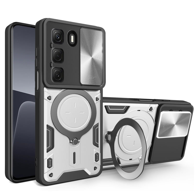 Funda para Teléfono Infinix GT 20 Pro con Soporte Magnético Deslizante y Textura de CD (Plateada)