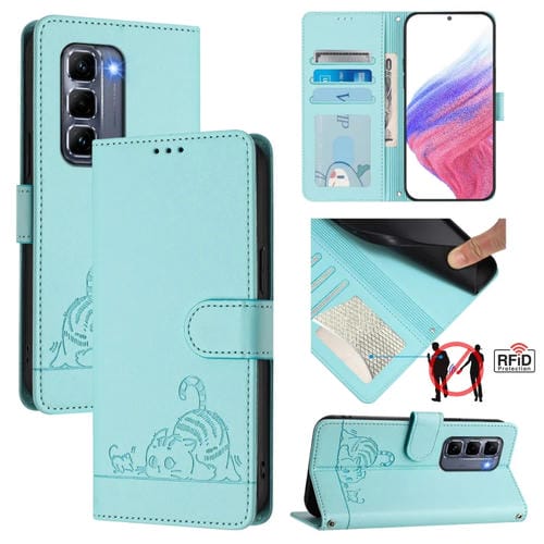 Funda de Cuero Rfid con Relieve Sonriente para Infinix Hot 50 Pro+ 4G (Verde Menta)