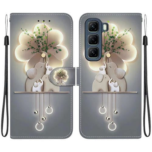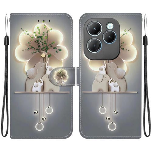 Funda de Cuero para Infinix Hot 50I Smart 9 con Dibujo de Colores y Textura de Cristal (Elefantes)