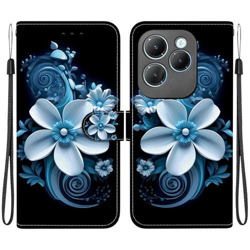 Funda de Cuero con Dibujo y Textura de Cristal para Infinix Smart 8/HD/Hot 40I (Orquídea Negra)